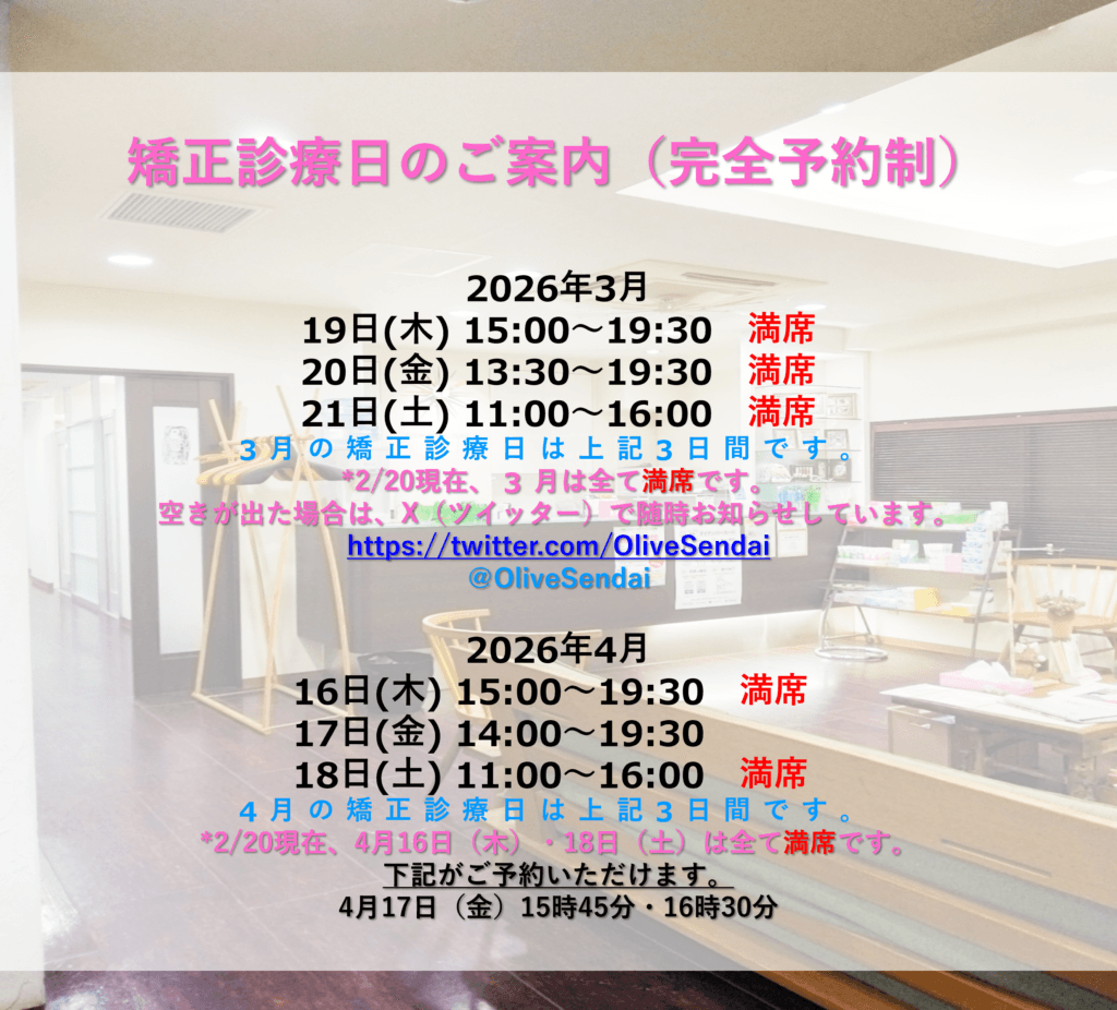 ✨*2/20現在、3月の矯正診療日は満席です✨